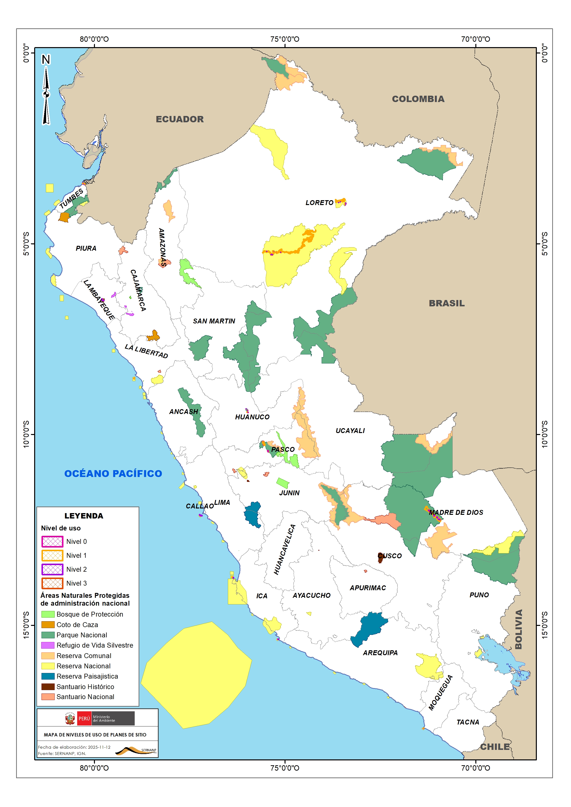 Representa la geoespacialización de las áreas o zonas compatibles con el uso turístico y recreativo el interior de las áreas naturales protegidas, al cual, establece el grado de intensidad específicos de la actividad humana (niveles de uso y subniveles) en relación a la conservación y vulnerabilidad de los ecosistemas de acuerdo a la normativa de ANP. Además, se establece oportunidades de recreación, a partir del ordenamiento de las actividades realizadas por visitantes; así como el ordenamiento de los servicios turísticos, y a la vez se identifican ámbitos de los otorgamientos de derechos (espacialmente), atractivos, circuitos y rutas turísticas, así como infraestructuras e instalaciones turísticas.